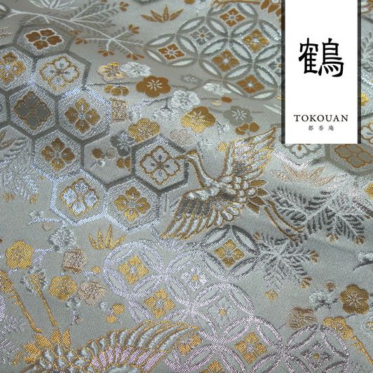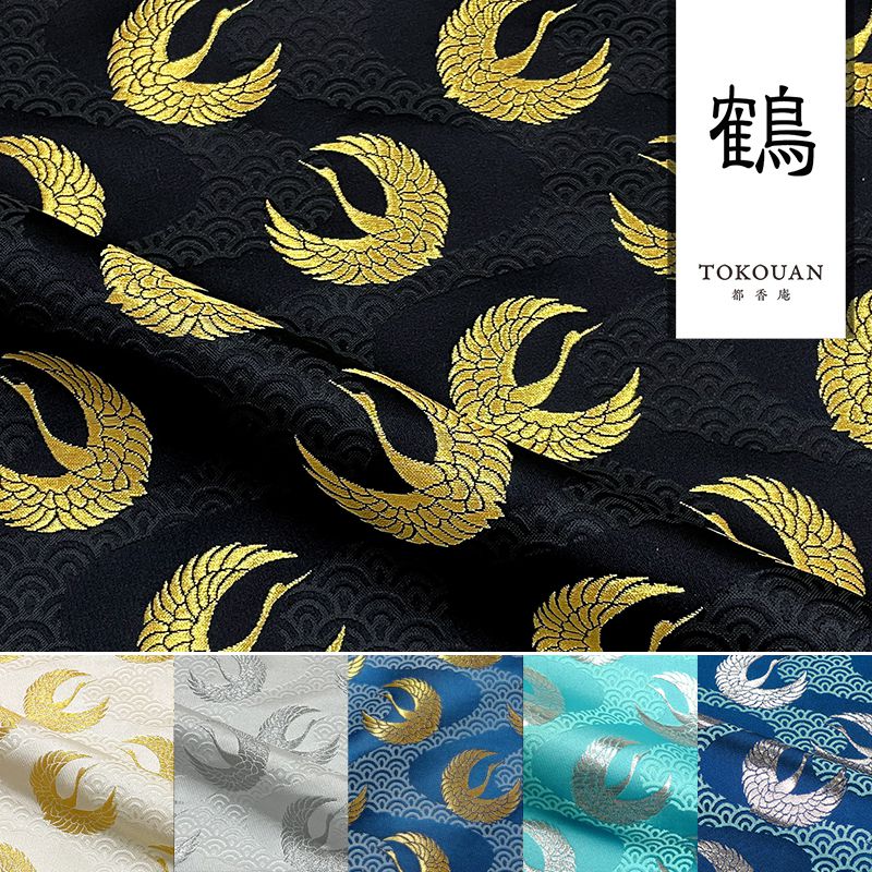 和柄 生地 金襴生地 京都 西陣織 青海波水文地に鶴 (全6色) 10cm単位 切り売り