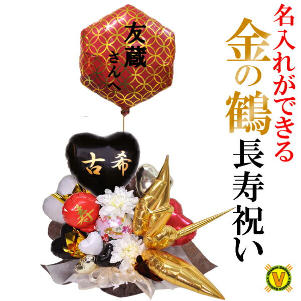 送料無料オリジナルバルーンアレンジメント長寿祝い 金の鶴 / 還暦 緑寿 古希 喜寿 傘寿 米寿 卒寿 白寿...