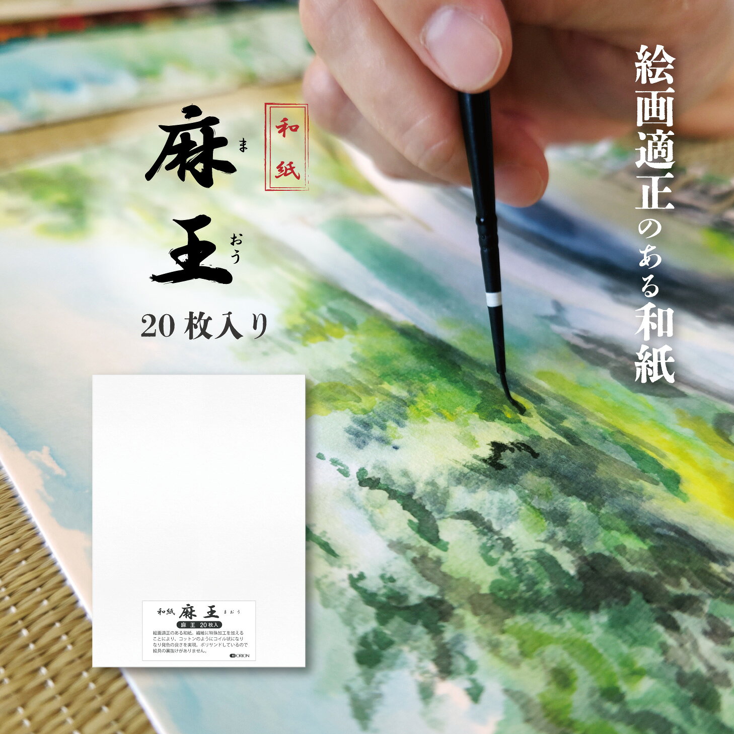 和紙 麻王 20枚入り 選べる9サイズ 水墨画・墨絵・水彩に ドーサ引きなし オリオン ドーサ引きなし!にじみが広がって裏抜けしない和紙 麻王は手漉き和紙の良さを再現した、絵画適性のある和紙です。裏抜けせず...
