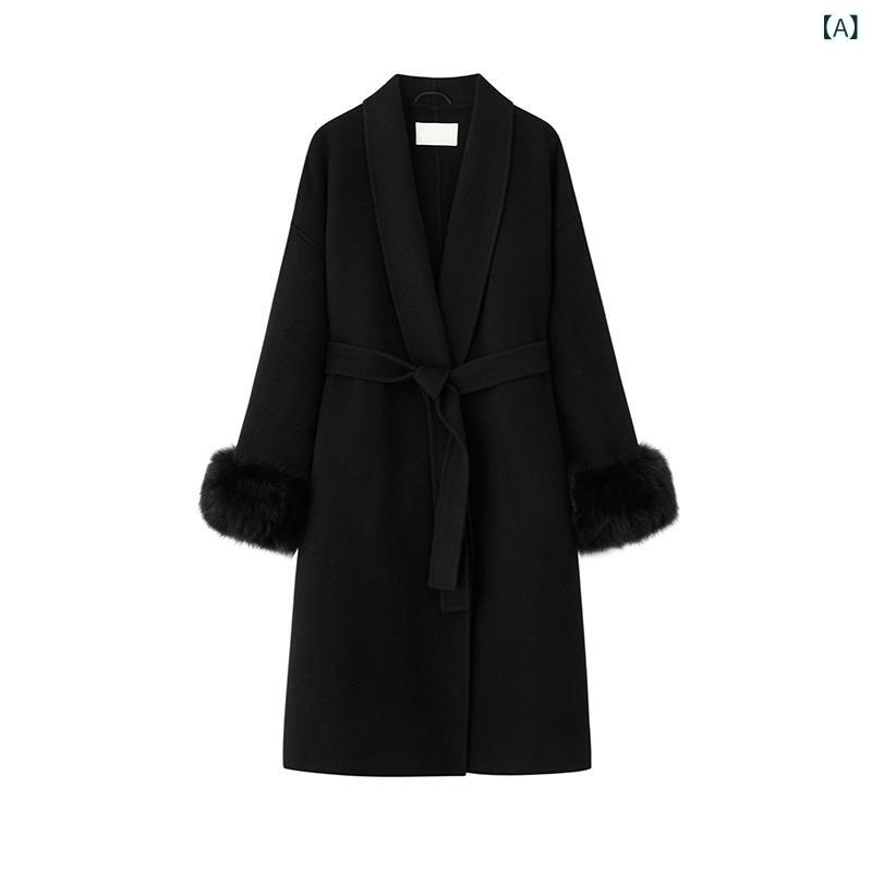 レディース チェスターコート エレガント 女性 大人 上品 黒い キツネの 毛の 両面の ラシャの コートの...