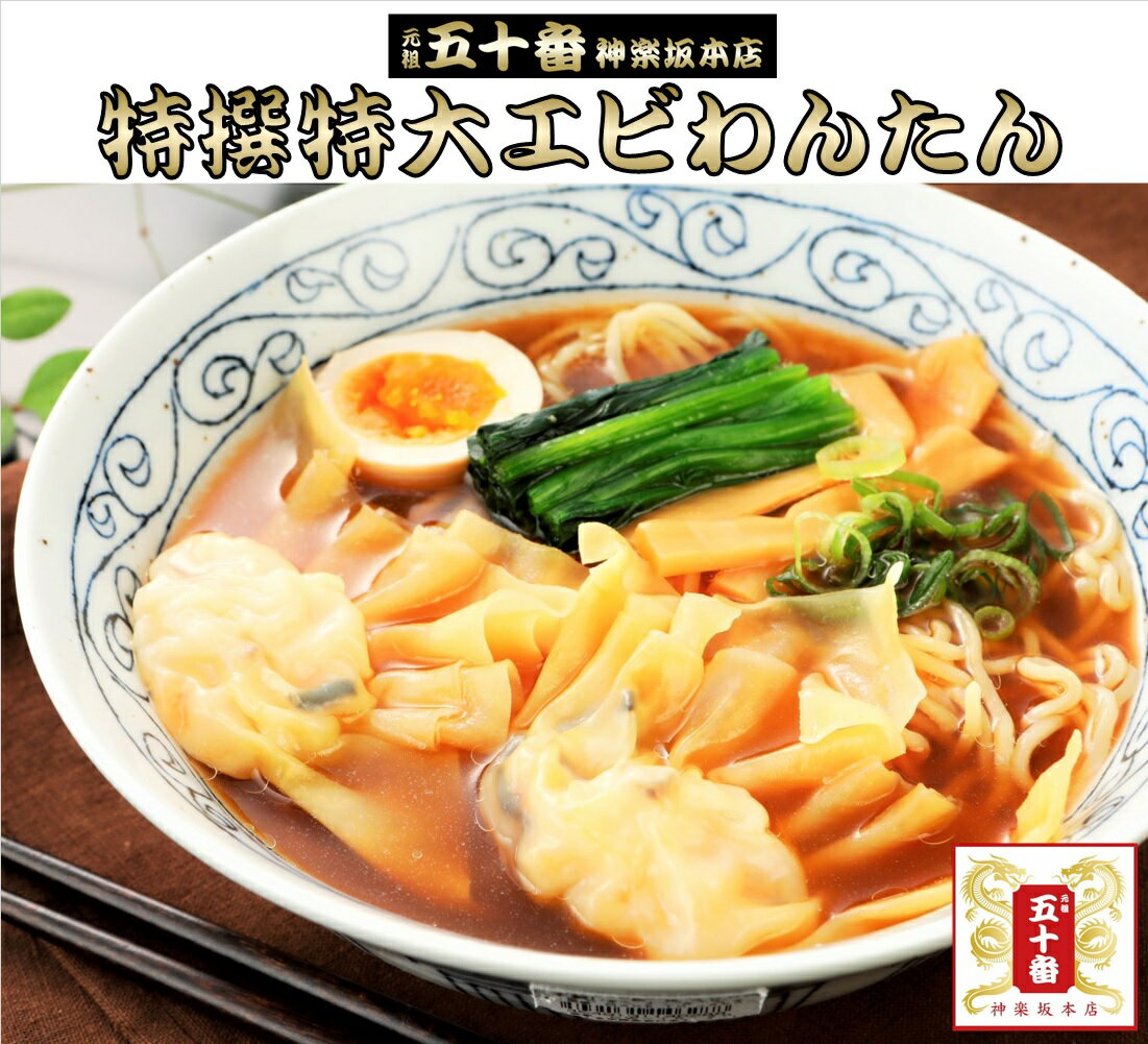 商品情報 名称 特撰特大海老ワンタン内容量 特大10個(2〜3人前)消費期限 冷凍で90日原材料 原材料表はこちら販売者 元祖 五十番 神楽坂本店調理方法 熱湯で茹でる。茹でて浮かんで来て30秒〜1分したらお湯から...
